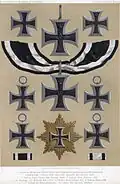 | Herhalingsspeld IJzeren Kruis 2e klasse | IJzeren Kruis 2e klasse | IJzeren Kruis 1e klasse | Ridderkruis (replica) | Ridderkruis met Eikenloof (replica) | Ridderkruis met Eikenloof en Zwaarden (replica) | Ridderkruis met Eikenloof, Zwaarden en Briljanten (replica) | Ridderkruis met gouden Eikenloof, Zwaarden en Briljanten (replica) | Grootkruis (replica) | |