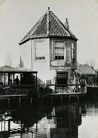 Na vele malen van eigenaar te zijn verwisseld, wordt de koepel op 26 juli 1856 door T.H. Nijenhuis, meester stukadoor te Delft, gekocht voor ƒ 370, — . Dit gebeurt op een veiling in het koffyhuis "Het Gulden Vlies" met als notaris mr. Bartholomeüs van Berkel, en als getuigen de beide stadsomroepers. Op 16 oktober 1856 verkoopt hij twee derde van de koepel voor ƒ 246,66 aan Johannes van der Meer, meestersmid en aan Adrianus Smit, meester-schoenmaker, beiden te Delft wonend. Wat zouden deze drie mannen met de toren gedaan hebben? Waren ze vrienden en gebruikten ze het huis als gemeenschappelijke werkplaats? Of gingen ze er op vrije dagen, als in een tuinkoepel, uitrusten van het werk en vissen in de stadsgracht? Beide veronderstellingen zullen wel juist geweest zijn.