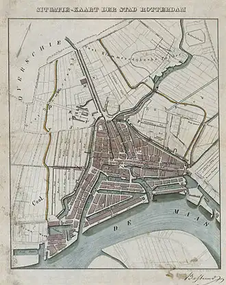 De stort van afval en rioolwater leidde tot een enorme stank in de grachten, en door het gebruik van dit vervuilde water als drinkwater kwam de ziekte cholera regelmatig tot uitbraak in Rotterdam. Het ontwerp van 1841 werd door de Rotterdamse gemeenteraad te duur bevonden, waardoor werd besloten om alleen het westelijk deel uit te voeren. Toen in de jaren erop cholera bleef uitbreken bleven komen, werd in 1854 besloten alsnog een herzien plan voor het gehele gebied uit te voeren.
