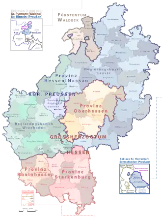 In het oosten grensde de provincie aan de andere Hessische provincie Starkenburg, in het zuiden aan het aan Beieren behorende Palts, in het oosten aan de Pruisische Rijnprovincie en in het noorden aan de Pruisische provincie Hessen-Nassau.