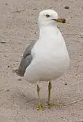Deze meeuw lijkt wel wat op de stormmeeuw maar hij heeft een gele snavel en groengele poten. De snavel heeft een zwarte ring, waar de vogel zijn naam aan ontleent.