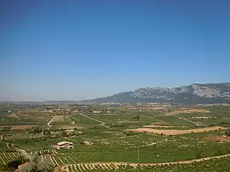 In het zuiden van de regio langs de Ebro worden wijndruiven verbouwd. De wijn die hier wordt gemaakt mag als Rioja wijn worden verkocht omdat het onderdeel uitmaakt van de Denominación de Origen-regulering. In totaal staan de druiven op ongeveer 13.000 hectare, waarvan 90% blauwe druiven voor de productie van rode Rioja.[1] Ongeveer 20% van de Rioja wijn komt uit deze comarca. In de Rioja Alavesa bevindt zich wijnhuis Marques de Riscal met een gebouw van Frank Gehry.