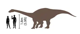 Vergelijking van de grootte van Riojasaurus met die van een mens.