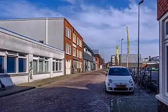 - ↑ In de Grunobuurt werd een soortgelijke industriestrook met bedrijven met bovenwoningen aangelegd langs het Hoornsediep.