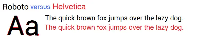 Na de lancering van Roboto werd er op meerdere sites de gelijkenis met het andere lettertype Helvetica beschreven. Men dacht dat Google Helvetica heeft nagemaakt.[1] Roboto ziet er voor een deel hetzelfde uit als Helvetica maar heeft een paar letters met een iets korter uiteinde, zoals te zien op de afbeelding.