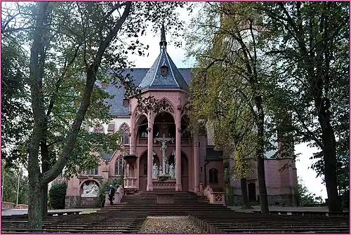 Maar in 1889 sloeg weer het noodlot toe bij het inslaan van de bliksem, zes weken voordat de lopende restauratiewerkzaamheden werden voltooid. De kapel brandde tot op de muren volledig af. Spontaan werden onmiddellijk grote sommen geld ingezameld. Naar een ontwerp van Max Meckel werd op de fundamenten van de afgebrande kapel de huidige neogotische kerk gebouwd in de jaren 1893-1895. Op 18 mei 1891 legde de Mainzer bisschop Haffner de eerste steen voor de nieuwbouw en reeds op 17 augustus 1895 werd de kerk gewijd onder grote publieke belangstelling en in aanwezigheid van een groot aantal bisschoppen uit verschillende bisdommen.