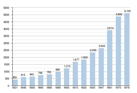 - Bronnen:NIS, Opm:1831 tot en met 1970=volkstellingen; 1976 = inwoneraantal op 31 december
