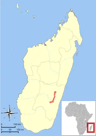 | Verspreidingsgebied van de rode muismaki | |||||||||||||||||