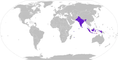 India, Indonesië, de Malediven, Mauritius, Nepal, Pakistan, de Seychellen, Sri Lanka