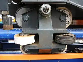 Een karretje dat op de achtbaanrails staat, omsluit met zijn wielen de rails volledig. Aan beide kanten staan de wielen op, onder en aan één zijde tegen de rails. Hierdoor valt het karretje zelfs niet van de rails als het ondersteboven tot stilstand komt. De wielen die hiervoor zorgen, worden onderfrictie-wielen of upstop-wielen genoemd. Heel oude achtbanen - die nog geen inversies maakten - hadden deze onderste set wielen niet en worden zijfrictieachtbanen genoemd.