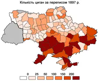 - Ontwikkeling van het aantal Roma in Oekraïne (1897-2001)