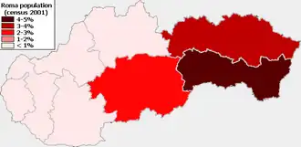 | Sprekers van het Romani in Slowakije | ||||||||||||||