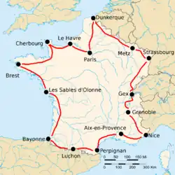 ![]() Route van de Ronde van Frankrijk 1920 met start in Parijs. | |||