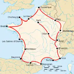 ![]() Route van de Ronde van Frankrijk 1926 met start in Evian en finish in Parijs. | |||