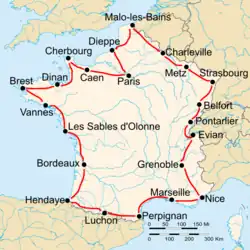 ![]() Route van de Ronde van Frankrijk 1928 met start en finish in Parijs. | ||