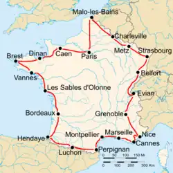 ![]() Route van de Ronde van Frankrijk 1930 met start en finish in Parijs. | ||