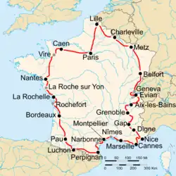 ![]() Route van de Ronde van Frankrijk 1935 met start en finish in Parijs. | ||