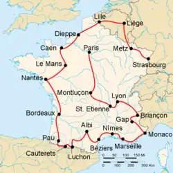 ![]() Route van de Ronde van Frankrijk 1953. | |||