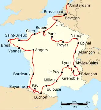 ![]() Route van de Ronde van Frankrijk 1954. | |||