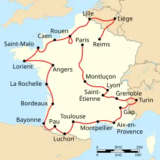![]() Route van de Ronde van Frankrijk 1956. | |||