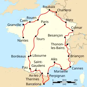 ![]() Route van de Ronde van Frankrijk 1957. | |||