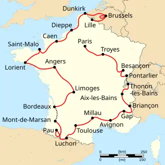 ![]() Route van de Ronde van Frankrijk 1960. | |||