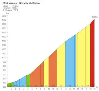 Het is een bergrit met drie beklimmingen van de vierde categorie, een van de derde en één buiten categorie. Op 208 km is er een tussensprint in Malaucène.