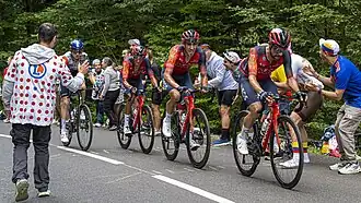 Vlak onder de top van de Col de Soudet demarreerde de Oostenrijker Felix Gall uit de kopgroep en haalde de 20 punten voor het bergklassement op. Daniel Martínez en Giulio Ciccone volgden en Jai Hindley kwam vier minuten voor Pogačar en Vingegaard over de top. Na de afdaling sprong de Let Krists Neilands weg, Julian Alaphilippe en Wout van Aert konden hem pas net na de top van de Col d'Ichère bijhalen. Intussen hadden Großschartner en Soler zich terug laten zakken in het peloton om te helpen de achterstand op de kopgroep te verkleinen maar bij het begin van de slotklim op de Col de Marie Blanque was de achterstand nog altijd drie minuten.