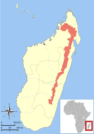 | Verspreidingsgebied van de roodbuikmaki | |||||||||||||||||||