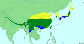 De soort komt voor in delen van Oost-Azië en in de Himalaya en telt drie ondersoorten: