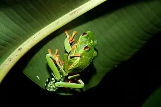 | Roodoogmakikikker IUCN-status: Niet bedreigd[1] (2016) | |||||||||||||