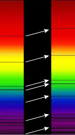 Als de bron van het licht zich van de waarnemer af beweegt, ontstaat er een roodverschuiving (z > 0). In het andere geval ontstaat er een blauwverschuiving (z < 0). Als er geen relatieve beweging is, is er ook geen spectrale verschuiving (z = 0).
