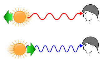 Het tegengestelde effect, waarbij een verschuiving naar de kortere golflengten, naar het blauw, plaatsvindt, heet blauwverschuiving.