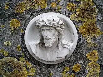 In het midden van het hoofdpad staat een gietijzeren kruisbeeld uit 1853 dat in Parijs is gegoten.