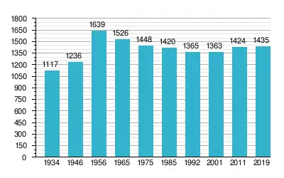 In de eerste volkstelling van 1934 registreerde het dorp 1.117 inwoners. Dit groeide tot een officiële hoogtepunt van 1.639 inwoners in 1956. Sindsdien schommelt het inwonersaantal rond de 1.400 personen. Op 31 december 2019 telde het dorp 1.435 inwoners.[1]