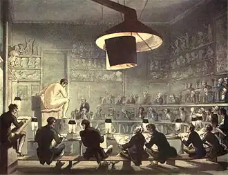 De Royal Academy was aanvankelijk gehuisvest aan Pall Mall, maar verhuisde al naar enkele jaren naar Old Burlington House aan de Strand, destijds een koninklijk paleis. Nadat dit paleis in 1771 werd herbouwd door de architect William Chambers, penningmeester van de RA, kreeg men hier een vleugel ter beschikking.