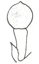 De bolvormige, fijnrimpelige vrucht heeft een diameter van 1,7-2,4 mm, een 3-4 mm lange vruchtsteel en is aan de bovenkant afgerond.