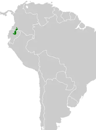 Deze soort komt voor in het noordwestelijk Amazonebekken van zuidelijk Colombia tot noordoostelijk Ecuador, noordoostelijk Peru en noordwestelijk Brazilië.