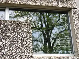 Het plan is opgebouwd uit identieke drive-in woningen van drie woonlagen, gerealiseerd in een gietbouwsysteem met gevels van gewassen betonelementen en aluminium schuifpuien. Doordat de voorgevel smaller is dan de achtergevel ontstaat vanzelf de halve cirkelvorm. Alle woningen hebben een achtertuin die grenst aan het openbare groen. Aan de voorkant heeft elke woning een betonnen plantenbak en een oprit voor het parkeren van een auto.
