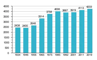 Het dorp heeft een relatief gunstige leeftijdsopbouw. Van de 4.113 inwoners die in februari 2011 werden geregistreerd, waren er 962 jonger dan 15 jaar oud (23%), 2.692 inwoners waren tussen de 15-64 jaar oud (66%), terwijl er 459 inwoners van 65 jaar of ouder werden geteld (11%).[4][5]