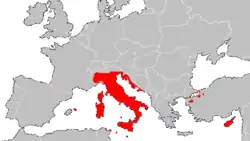De ruïnehagedis komt voor in het zuiden van Europa rond het Middellandse Zeegebied en leefde oorspronkelijk alleen in Servië. De hagedis heeft zich -vaak met behulp van de mens- verspreid naar vele andere landen zoals Albanië, de Balearen, Frankrijk (inclusief Corsica), Griekenland, Italië, Kroatië, Libië, Portugal, Spanje, Tunesië en Turkije.[7]