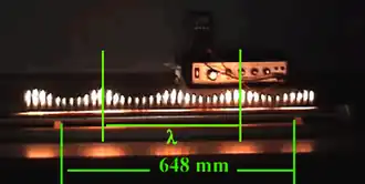 In een lange buis worden aan de bovenkant gaten gemaakt en de buis wordt aan beide kanten gedicht - aan de ene kant met een luidspreker, aan de andere kant met een toevoer van brandbaar gas. De buis wordt gevuld met gas, en het gas dat uit de gaten komt wordt aangestoken. Wanneer de luidspreker ingeschakeld wordt, verandert de druk in de buis als gevolg van de geluidsgolven. Hierdoor worden de vlammen op sommige punten hoger, en op andere punten lager. Als een constante frequentie wordt gebruikt kan de golflengte bepaald worden door deze simpelweg met een liniaal te meten.