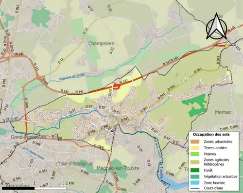 De onderstaande kaart toont de ligging van Ruelle-sur-Touvre met de belangrijkste infrastructuur en aangrenzende gemeenten.