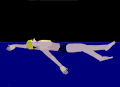 De armslag en de beenslag staan in een constante verhouding met elkaar. In het algemeen is de verhouding 2:6: per twee armslagen kruisen de benen elkaar zes keer.