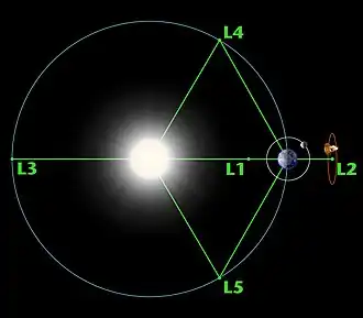 - Gaia van de Europese ruimtevaartorganisatie ESA bevindt zich in een Lissajous-achtige baan rond het L2 punt van aarde/zon.