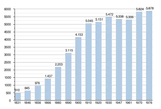 - Bronnen:NIS, Opm:1831 tot en met 1970=volkstellingen; 1976 = inwoneraantal op 31 december