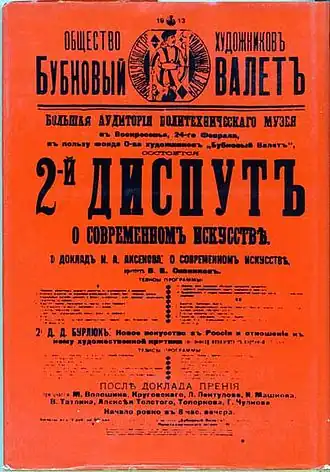 Eind 1910 organiseerden de jonge avant-gardistische kunstschilders Michael Larionov, Nalalja Gontsjarova en Aristarch Lentoelov een grote onafhankelijke kunsttentoonstelling te Moskou, onder de naam Ruiten Boer (symbool voor de vrijgevochten kunstenaar). Werken van Henri Le Fauconnier, André Lhote, Albert Gleizes en Jean Metzinger werden tentoongesteld naast schilderijen van een nieuwe generatie modernistische Russische kunstschilders. Naast Larionov, Gontcharova en Lentoelov waren dat onder andere: Wassily Kandinsky, Kazimir Malevitsj, Aleksandra Ekster, Pjotr Kontsjalovski, Ilja Masjkov, Robert Falk en de broers Vladimir en David Boerljoek. De expositie trok internationale aandacht en werd door kunstcritici geprezen als het Russische equivalent van Der Blaue Reiter.