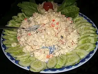 - Dit artikel of een eerdere versie ervan is een (gedeeltelijke) vertaling van het artikel Olivier salad op de Engelstalige Wikipedia, dat onder de licentie Creative Commons Naamsvermelding/Gelijk delen valt. Zie de bewerkingsgeschiedenis aldaar.