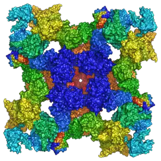 Ryanodinereceptoren zijn homotetrameren met meerdere domeinen die de intracellulaire afgifte van calciumionen uit het sarcoplasmatisch en endoplasmatisch reticulum reguleren. Het zijn de grootste bekende ionkanalen met een gewicht van meer dan 2 megadalton en hun structurele complexiteit maakt een grote verscheidenheid aan allosterische regulatiemechanismen mogelijk.