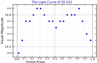 SS 433 ligt in de 10.000 jaar oude supernovarest W50 op een afstand van 18000 lichtjaar. Hij is ontdekt als een ster met sterke emissielijnen door Nicholas Sanduleak en C. Bruce Stephenson. Het is een normale ster (spectraaltype A7Ib) die om een neutronenster of zwart gat draait. Deze laatste is omringd door een accretieschijf van hete materie, waar materie van de ster naartoe stroomt. Uit het centrum van deze schijf worden protonen en elektronen weggeschoten, in twee ‘jets’ die loodrecht op de schijf staan. Omdat deze schijf een schommelbeweging maakt zoals een ronddraaiende tol, is in de jets een duidelijke kurkentrekkerstructuur waar te nemen. De snelheid waarmee de deeltjes weggeschoten worden schommelt tussen 24 en 28 procent van de lichtsnelheid. De veranderingen in de snelheid waarmee materiaal van de ster naar de accretieschijf wordt overgedragen is mogelijk de oorzaak van de snelheidsverschillen van de weggeschoten deeltjes.
